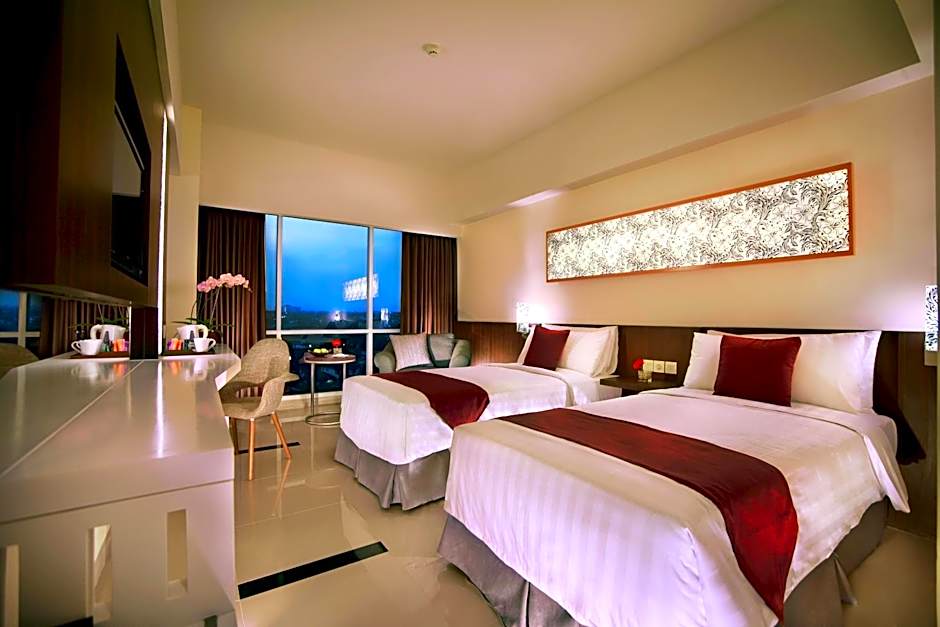 Providing free toiletries, this twin room includes a private bathroom with a shower, a hairdryer and slippers. The air-conditioned twin room provides a flat-screen TV with satellite channels, soundproof walls, a seating area, a wardrobe as well as pool views. The unit offers 2 beds.
